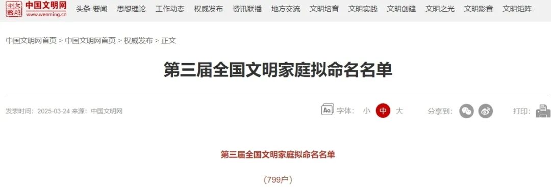 入选第三届全国文明家庭拟命名名单