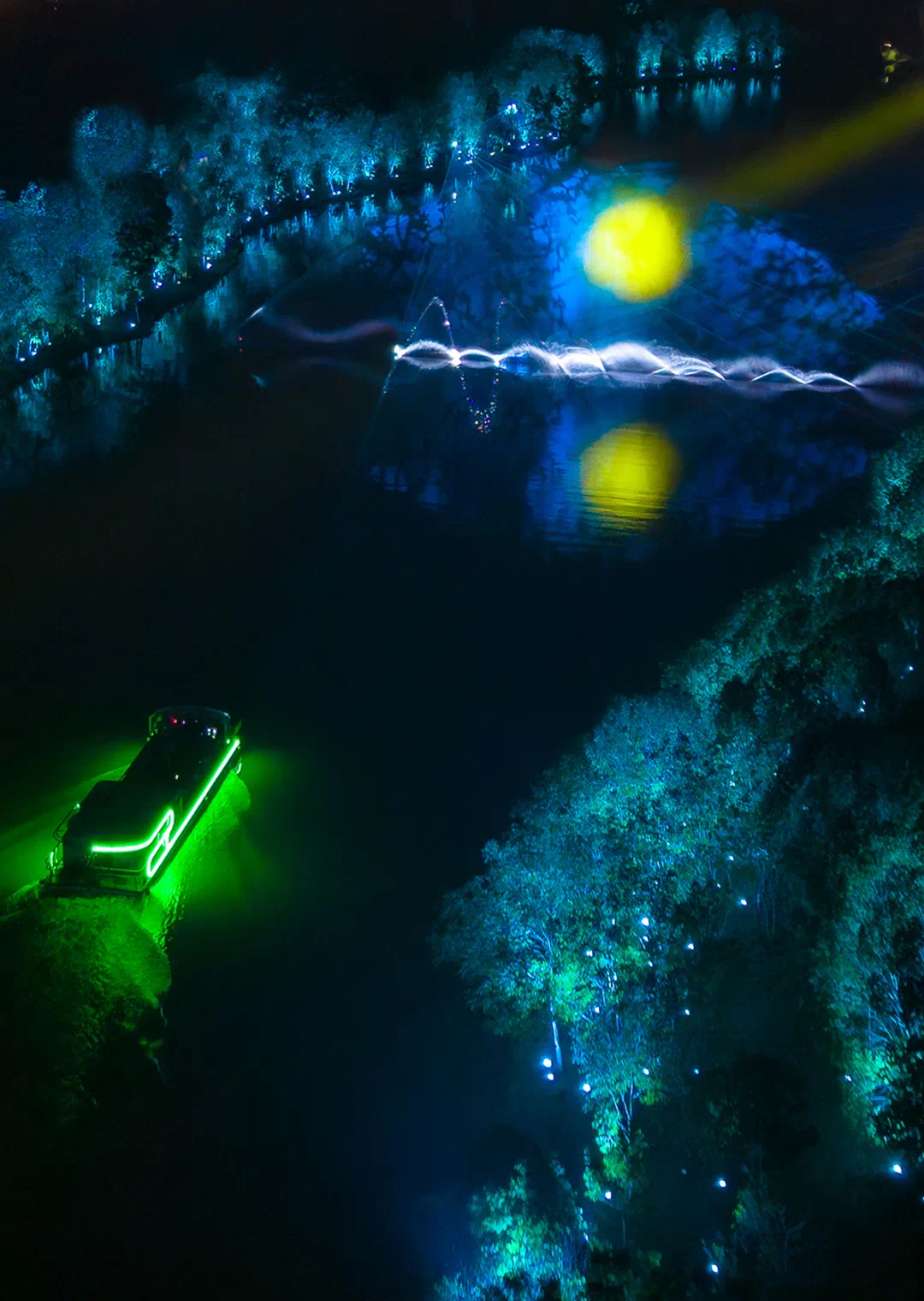 一河碧水焕新颜,千年文脉续华章。槐荫河是孝感的“母亲河”,承载着“孝行天下”的文化基因,见证过“九街十八巷”的商贸繁华。《槐荫船说》以水为脉、以文为魂、以光为媒,让观众身临其境体验董永和七仙女的美丽传说,领略历史与现代交织的动人场景。