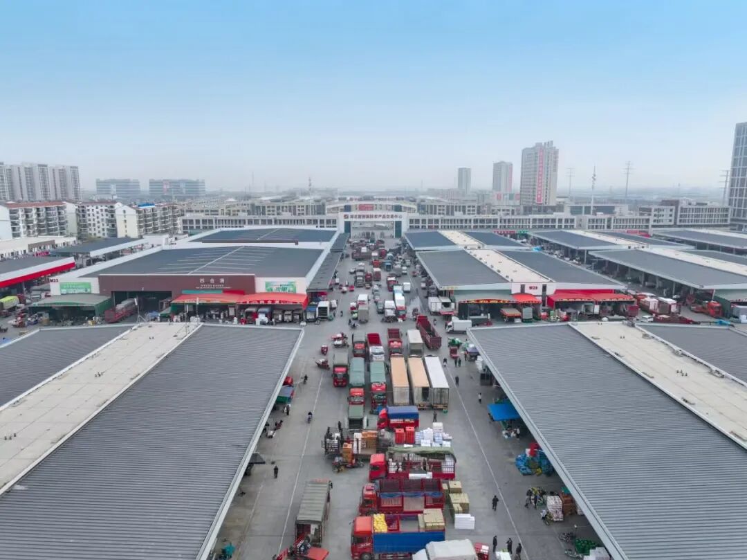 在首衡城农副产品集散中心,来自山东的黄瓜、云南的绿叶菜等近百种生鲜整齐码放,智能化冷链系统实时监测商品鲜度。
