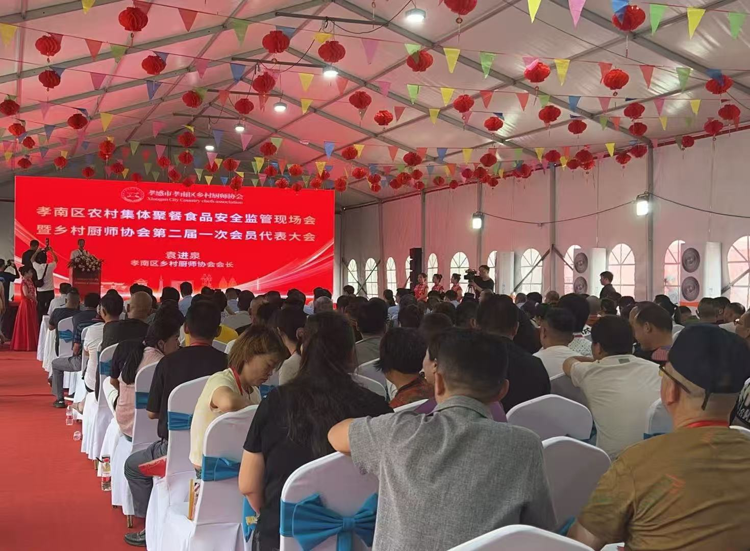 5月21日,孝南区农村集体聚餐食品安全监管现场会暨乡厨行业协会第二届一次会员代表大会在孝感市孝南区杨店镇西子街桃花驿公园隆重举行。本次活动由孝南区市场监督管理局、孝南区乡厨行业协会联合主办,旨在保障农村集体聚餐食品安全,推动乡厨行业朝着标准化、专业化发展,助力乡村餐饮经济高质量腾飞,是孝南区为农村群众“舌尖上的安全”筑牢防线的关键之举。市、区、乡各级相关领导以及全区各乡镇市场监管所负责人、乡厨行业协会会员代表、乡村厨师等共计230余人齐聚一堂,共襄盛举。