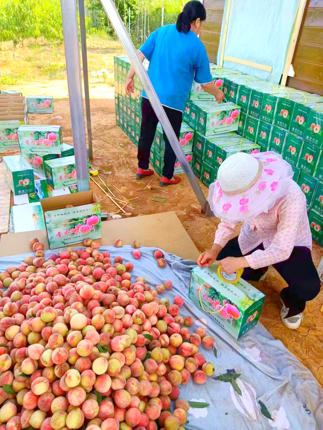 在杨店,政府引导种植大户、桃农加强标准园建设和推广,通过桃产业协会和桃产业合作联社,加强技术培训和沟通。选择水源充足、地势平缓的生茬地建园,桃园管理采取标准化、统一技术管理。从品种选择、栽植、除草、施肥、打药、剪枝、控旺、采摘、包装到销售,各个细节都严格把控。昔日的荒坡地变身“致富田”,青山绿水间的“甜蜜经济”正为乡村振兴注入源源活力。小小水蜜桃,不仅甜了消费者的味蕾,更成为杨店镇产业发展的“甜蜜引擎”,托起了当地的大产业,为乡村振兴注入新活力。