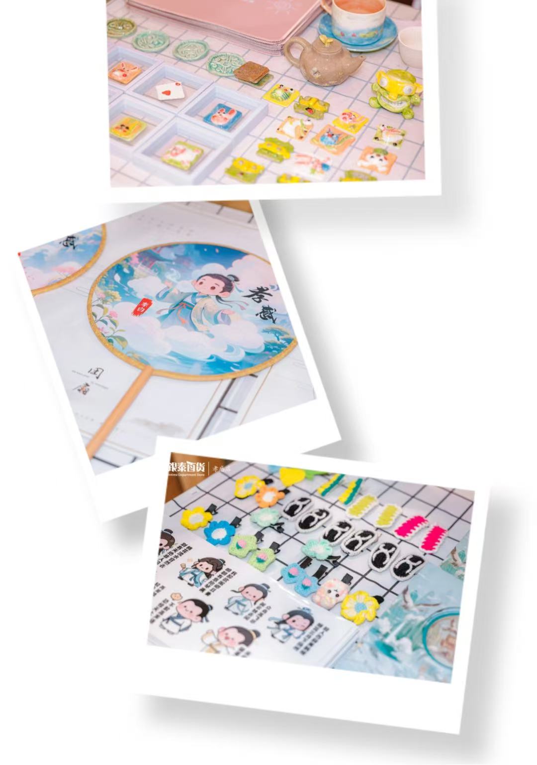 栩栩如生的孝感雕花剪纸、质朴中透着灵动的麦秆画、展现传统精湛技艺的金葫芦……一个个鲜活的传统非遗作品,无不吸引着市民的目光。年轻人聚集的“国潮文创”摊位,李白诗词手账、冰箱贴、孝感城市绢扇等文创产品琳琅满目,让古老文化焕发潮流活力。