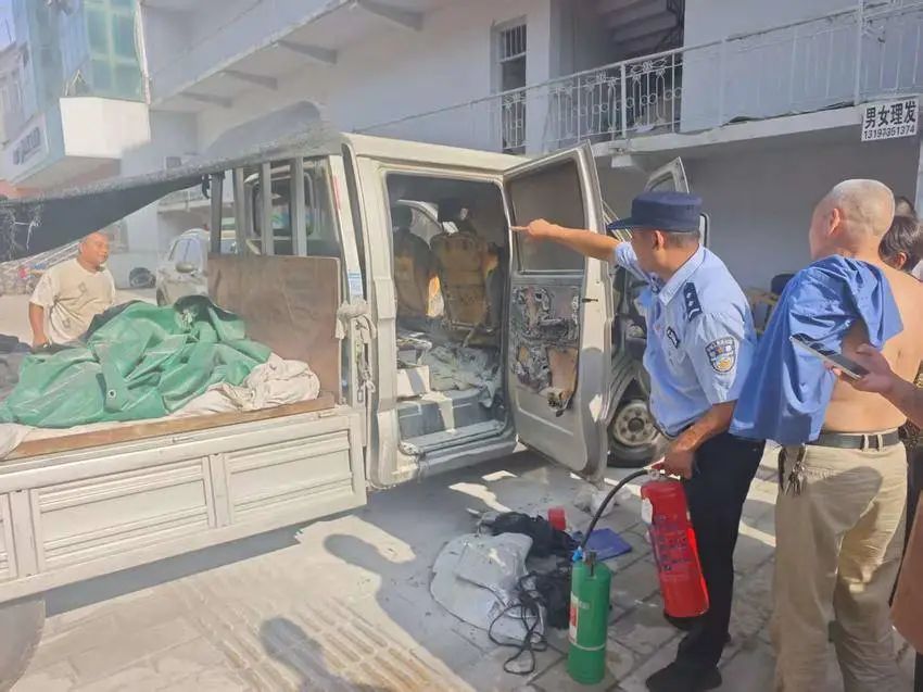 火灭了还不算完,队员们又开始仔细排查隐患。他们先把货车电源一关,接着七手八脚把没烧着的西瓜筐搬到安全地方,生怕还有暗火复燃,连车底下的旮旯都用干粉喷了个遍。