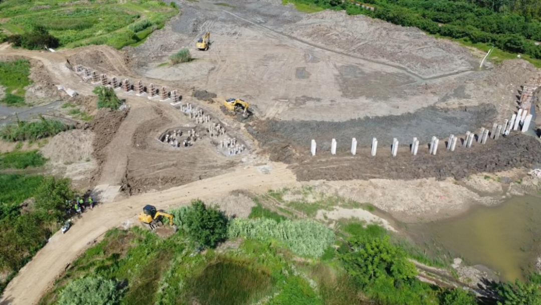 来到湿地公园南部,站在正在施工建设的朱湖南湖环线与S109省道平交的十字交汇点,机器轰鸣声此起彼伏,工程机械来回穿梭。南环线正在紧张铺设路基,s109省道施工现场同样热火朝天,两条重要道路的建设有序交织进行。