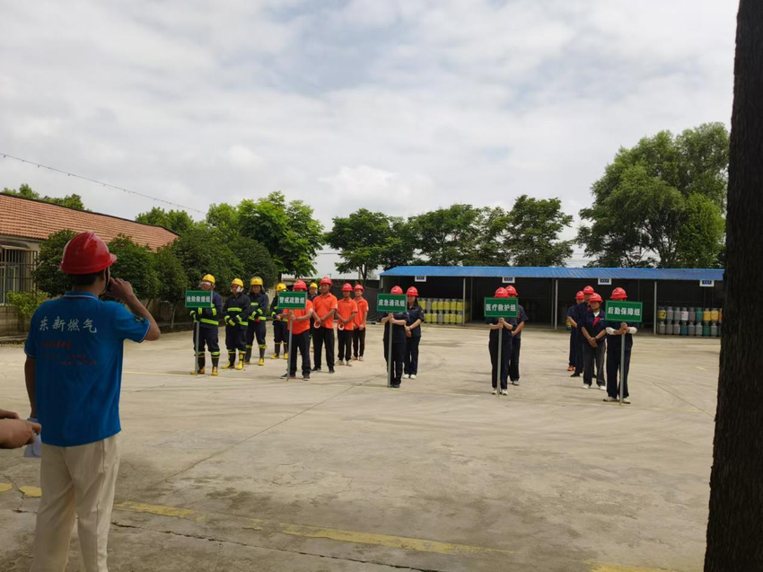 活动现场,市区燃气行业主管部门、市场监管、应急管理、消防救援、交通运输、公安和属地部门共同见证了东新燃气“小黄车”的启动,标志着孝南燃气行业规范化管理迈上了新台阶。而后聚焦安全生产月“人人讲安全、个个会应急——查找身边安全隐患”主题,开展了以模拟储罐底部液相法兰垫片老化破裂发生燃气泄漏为场景,涵盖了事故报警、先期处置、应急响应、人员疏散、抢修抢险、医疗救援等关键环节进行全过程模拟。