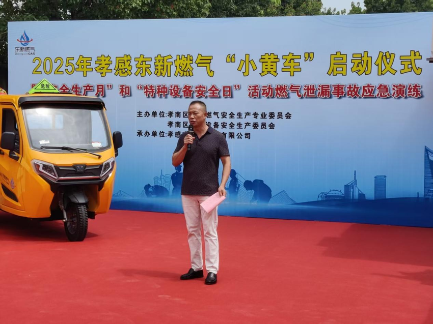 6月24日,由区城镇燃气安全生产专业委员会联合区特种设备安全生产委员会主办的2025年孝感东新燃气“小黄车”启动仪式暨“安全生产月”“特种设备安全日”活动燃气泄漏事故应急演练活动在孝感市东新燃气有限公司朋兴储配站举办。
