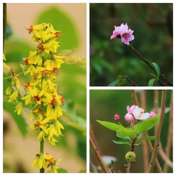 在湿地公园圩田绿道,前些天还叶蔫枝黄的桃树、梨树、海棠树,不经意间开花了。粉红、洁白、浅紫、嫩绿,相互簇拥,不时有蜜蜂、蝴蝶、蜻蜓等穿梭其间,也是热闹极了。