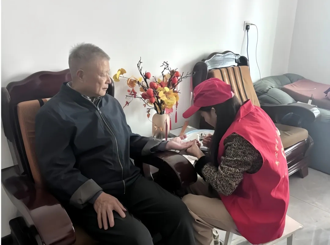 近日,新华街道文昌阁社区、澴川书房文昌阁分馆携手槐荫社工、湖北职业技术学院孝心护理志愿服务队及社区巾帼志愿者,共同将“幸福来敲门”这项常态化为老服务送入居民家中。这项长期坚持的社区行动,始终致力于通过“专业引领+多元联动”的模式,为空巢、高龄老人带去持续的健康守护与心灵慰藉。