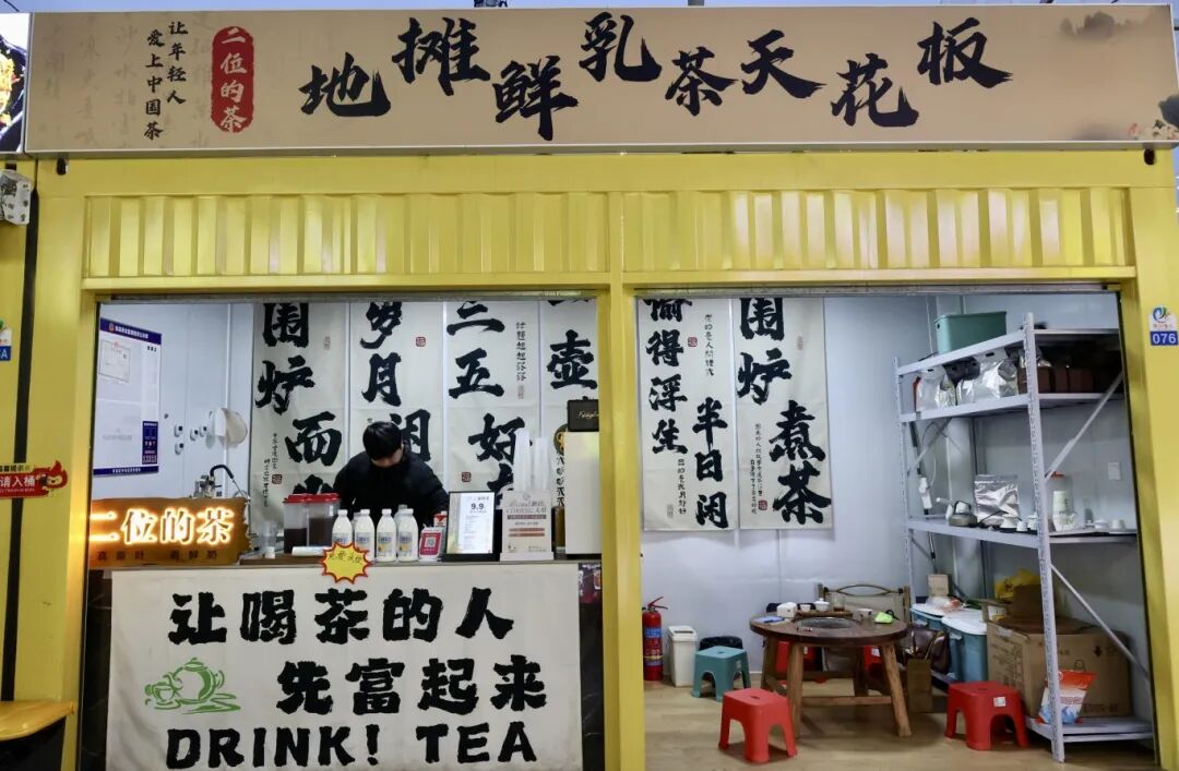 暖黄灯光下,“二位的茶”摊位主人李萌正与合伙人探讨新品计划,笔记本上工整记录着“米酒茶”“柠檬茶”等研发构想。
