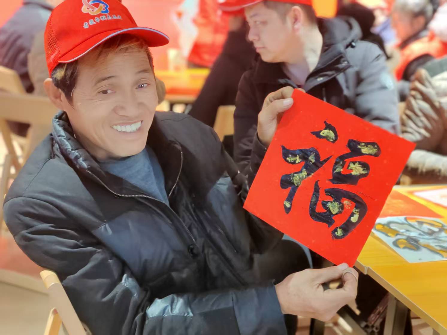 活动特别邀请孝感中国画学会的老师现场挥毫泼墨,为残疾朋友们送上定制化新春祝福。笔走龙蛇间,“骏马蹄开盛世春,军魂永驻家国安”“福满人间添喜气,春回大地展宏图”等兼具红色意蕴与吉祥寓意的春联新鲜出炉。老师们还根据每位残疾朋友的个性化需求,书写专属“福”字,一笔一画都饱含着对特殊群体的深切关怀与美好祝愿。拿到春联与福字的朋友们脸上洋溢着幸福笑容,纷纷表示:“这是今年收到的第一份文化年货,特别珍贵,让我们感受到了浓浓的年味和温暖!”