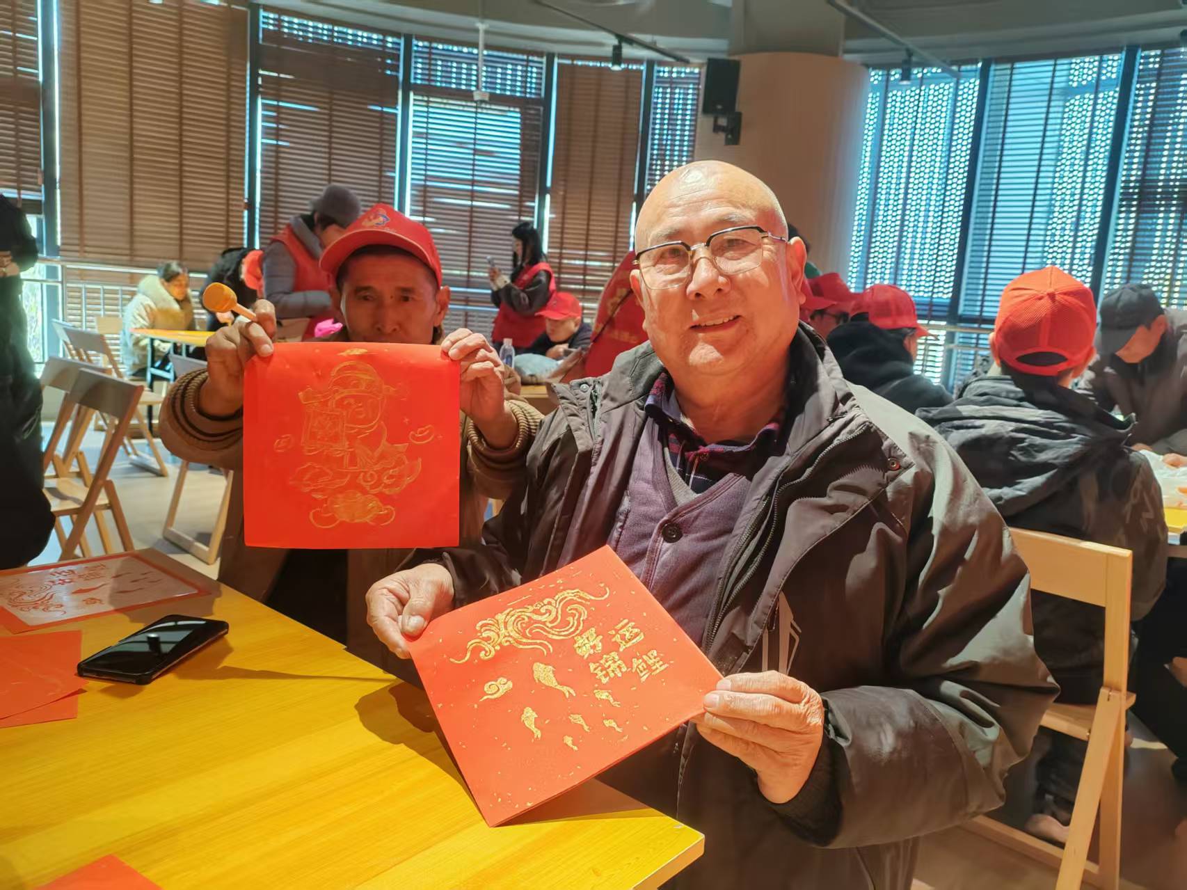 在多功能厅内,残疾朋友们集中观看红色影片《志愿军》。影片中,志愿军战士浴血奋战、保家卫国的壮烈场景深深打动着每一位观众,大家在光影中重温峥嵘岁月,感受英雄儿女的热血担当,红色精神与奋进力量在心中深深扎根。观影结束后,区残联工作人员及时送上精心准备的福字拓印材料包,手把手指导大家掌握蘸墨力度、拓印技巧与揭纸时机。短短二十分钟,一张张喜庆的“福”字跃然纸上,残疾朋友们举着自己亲手制作的作品开心合影,传统技艺在指尖传递着文化温度,尽显残健共融的暖心氛围。