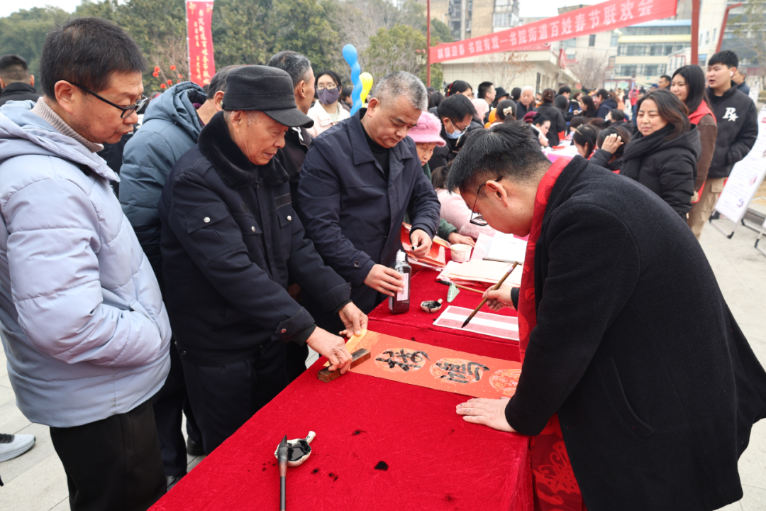 “村晚”常常成为一个功能聚合的“枢纽”。在广场街道的“村晚”计划里,文艺展演、年货消费、公益送福、志愿服务、“春风行动”招聘、非遗体验、典型表彰等项目被精心编织在一起。东山头办事处则规划了更具体的场景:卫生院的义诊摊位免费测量血压和血糖;志愿者提供磨刀、理发、反诈宣传等服务;书法爱好者现场挥毫。一场“村晚”,同时是一个便民服务日、一个就业咨询会、一个年货集市。