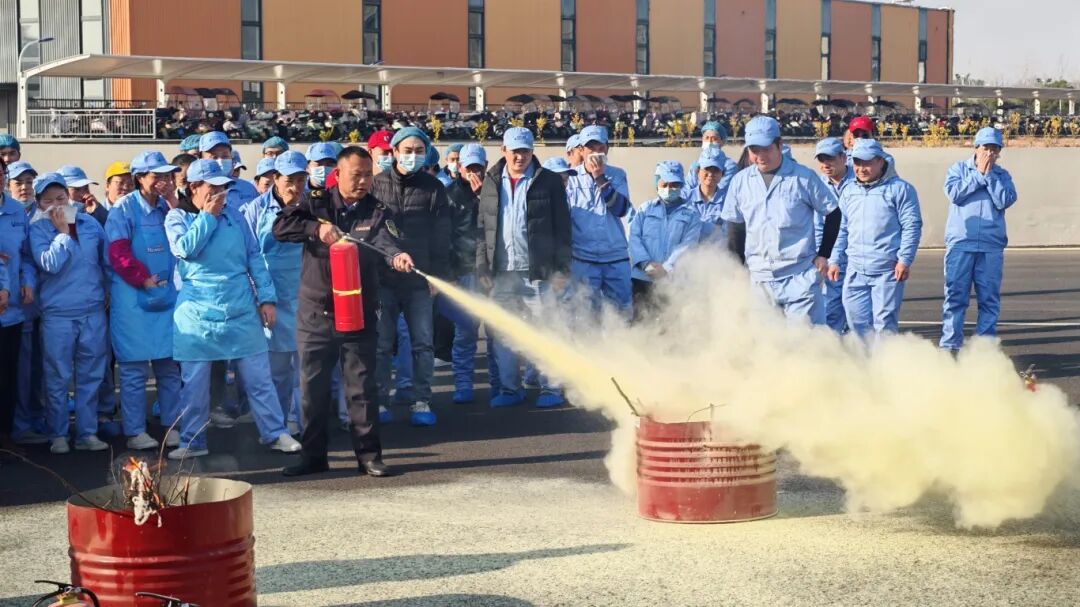 演练模拟车间突发火情、浓烟弥漫的紧急场景,参训员工第一时间进行安全疏散,迅速有序撤离至厂区外指定安全区域。随后,镇应急管理站负责人在现场为员工系统讲解了灭火器的类型、正确使用方法及注意事项,并指导员工轮流进行实操灭火练习。