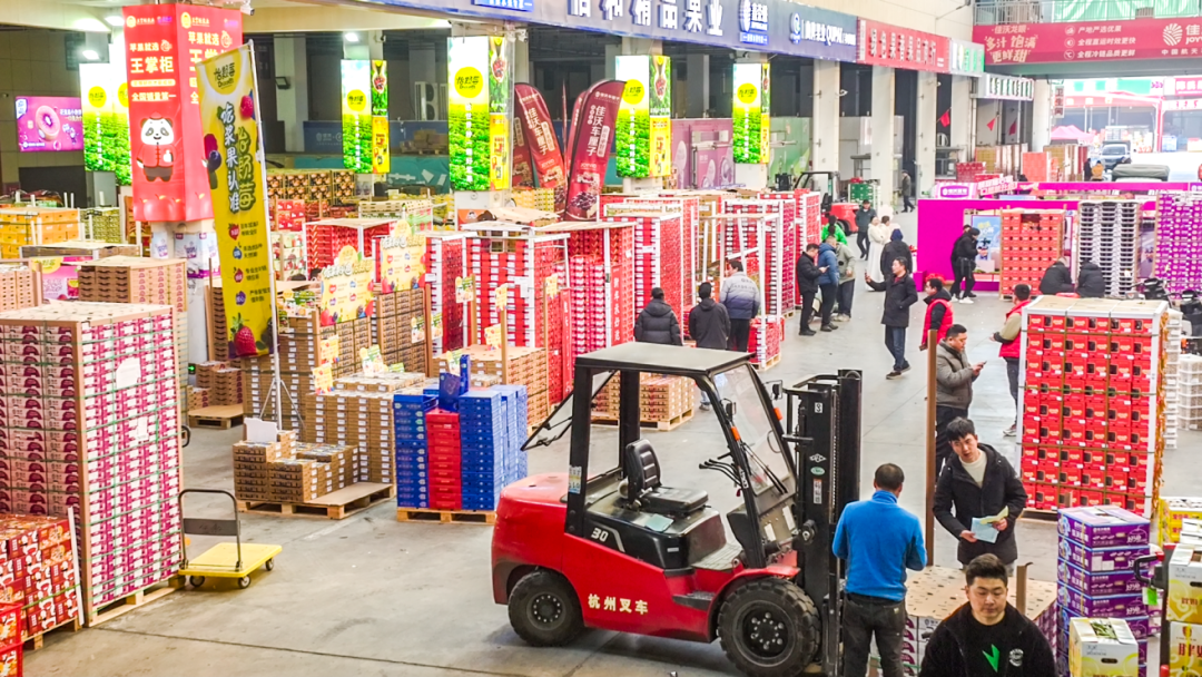 在国产水果区,“果北北果品商行”老板刘征军是自首衡城开业便入驻的“元老”商户。拥有19年水果经营经验的他,主要向湖北省内的连锁超市和水果店供货。刘征军高兴地表示:“销量现在越来越好了,2025年的产值几乎比2024年翻了一倍。”
