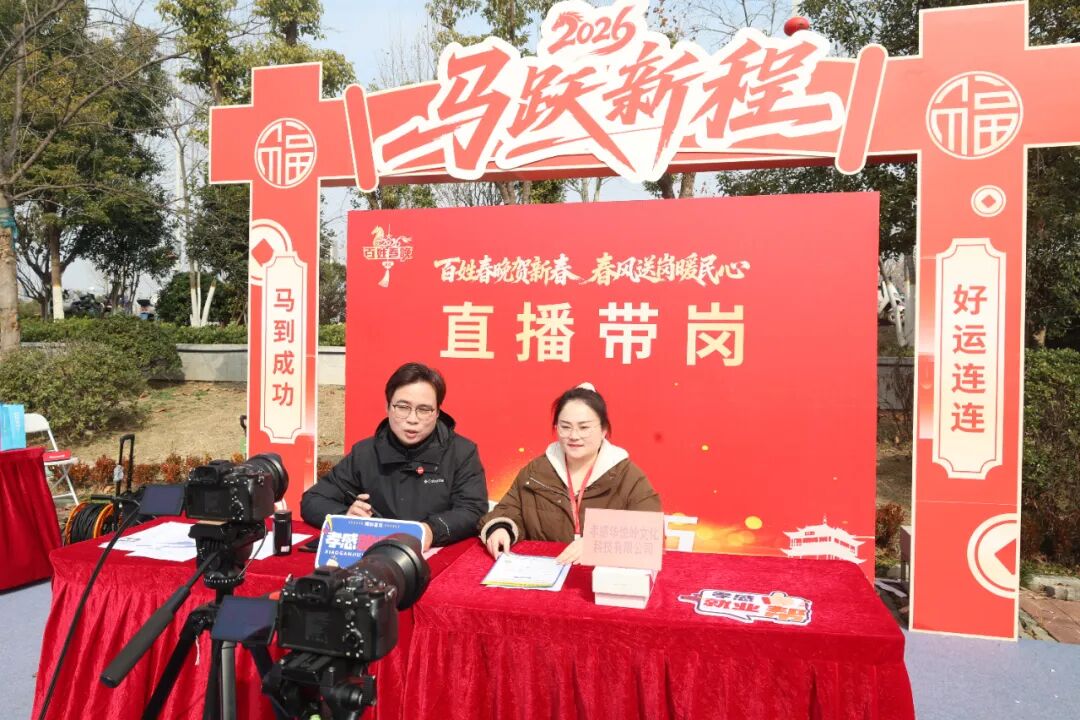 2月7日上午,孝感市2026年稳岗扩容提质行动启动仪式暨“春风行动”专场招聘活动,在孝南区“槐荫船说”中心广场隆重举行。
