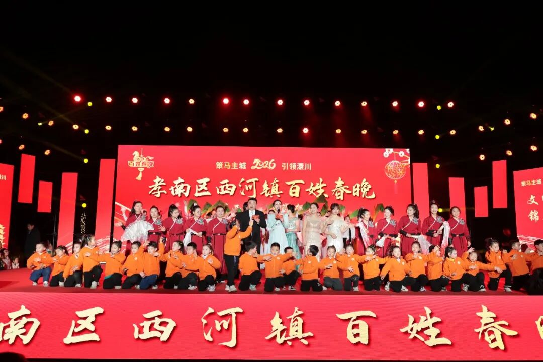 夜幕下,百姓春晚在热烈掌声中开场。晚会通过歌舞、快板、情景剧、小品等十余个节目,生动讲述了西河镇过去一年的发展变化——从四通八达的柏油路、焕然一新的中心公园,到锦鲤特色小镇的稳步建设、农文旅融合的蓬勃生机;从全国文明村镇、国家卫生城镇荣誉的坚守,到移风易俗新风尚的深入人心。