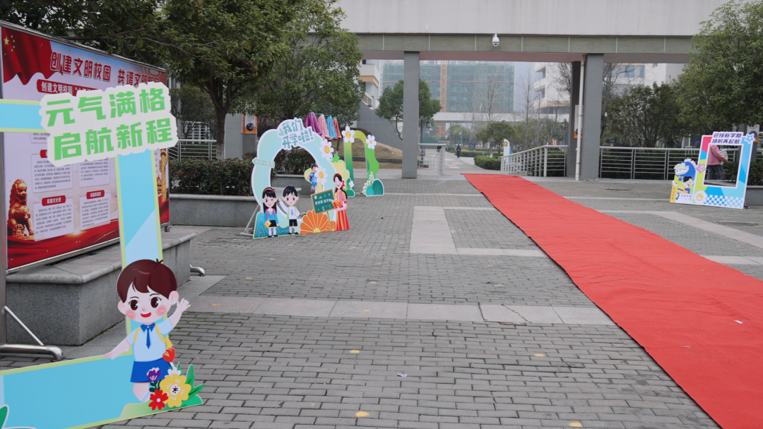 校园内,精心布置的迎新景观格外引人注目。各班级教室里,家委会和老师们提前协作,用五彩的气球、励志的标语和精美的板报营造出温馨愉悦的氛围。有的课桌上还摆放着系有红色蝴蝶结的新课本,细节之处尽显用心,让孩子们在惊喜与感动中迅速找到归属感。