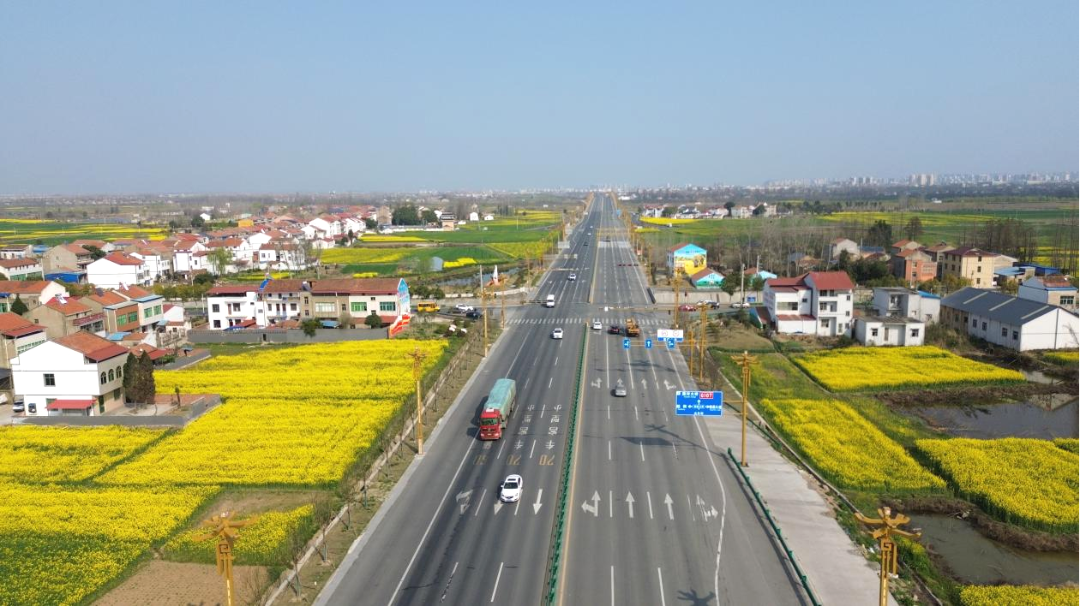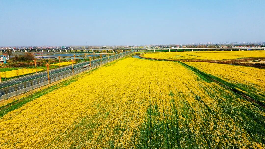 春染沃野,遍地金黄。时下,孝云大道麦草湖村段两侧的油菜花迎来盛花期,连绵的花海与蓝天白云、村落人家交相辉映,勾勒出一幅美不胜收的田园画卷。