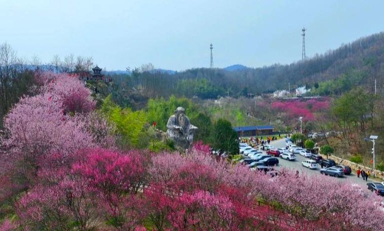 “我们是从武汉过来游玩的,这里风景好美,路也修得好,还有大片农田,很值得拍照。”几位游客正在桃花驿景区里拍照留念。景区内,红叶碧桃灿烂如火,游人沐浴春光,唱歌拍照,小朋友在游乐设施处撒欢,一派美好景象。
