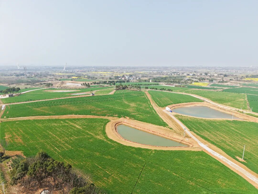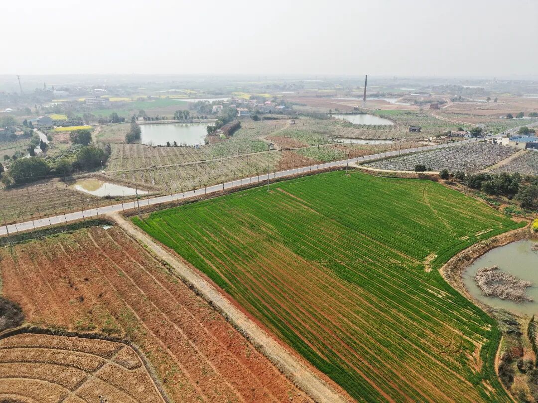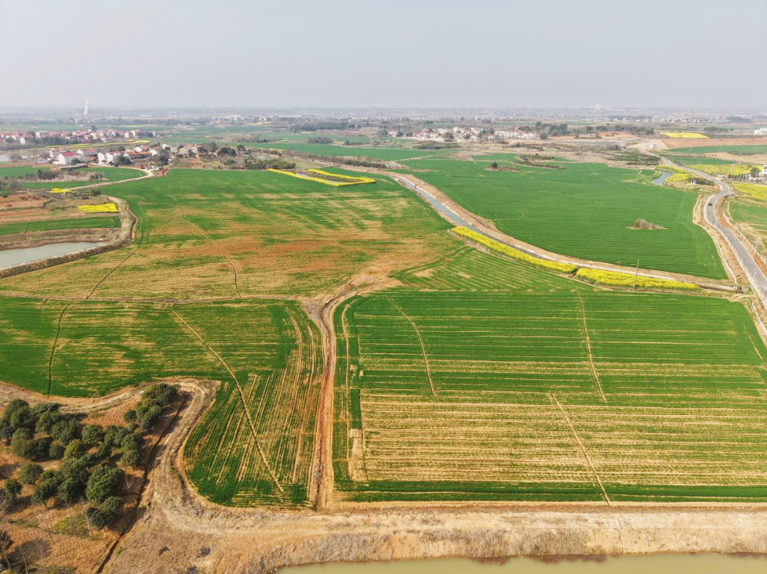 在四屋杨湾,登上湖北省牛刚强种养殖专业合作社的观景台,一幅壮阔的现代农业画卷在眼前铺展。曾经高低不平、大小不一的“补丁田”“巴掌田”,经过土地平整和集中连片整治,田成方、路相通、渠相连,已变成一望无际的规整良田。
