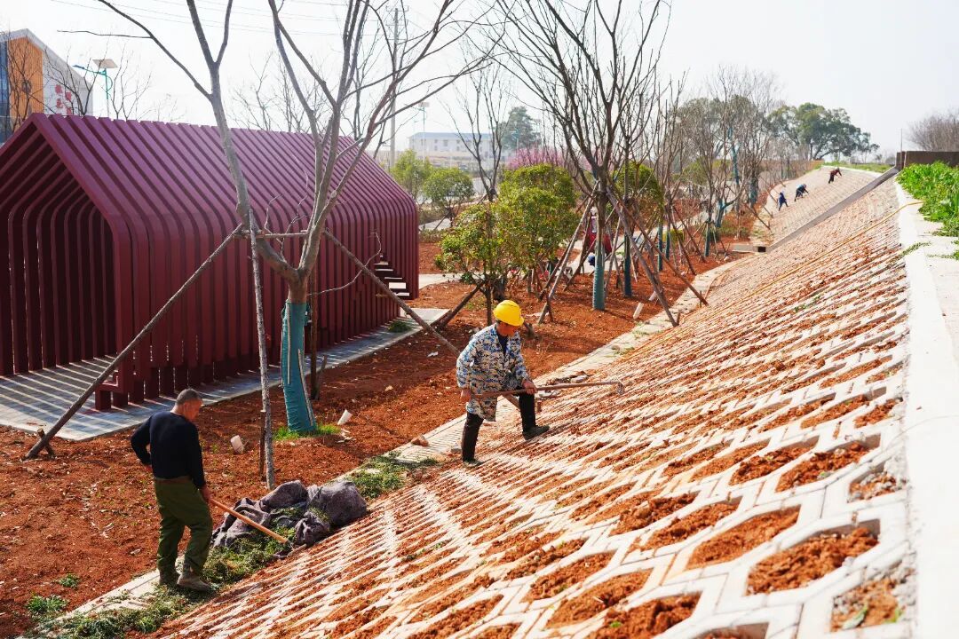 一路走来,无论是古朴的茶香驿站,还是融入现代设计理念的桃花公园,亦或是精心打造的村湾转角公园、观景台……11个景观节点如珍珠般散落在片区内,与优美的田园风光融为一体,移步换景,美不胜收。而这些地方,一年前还多是闲置的坡地、未经整理的坑塘与杂木林。