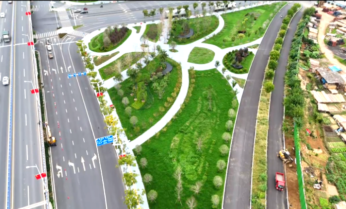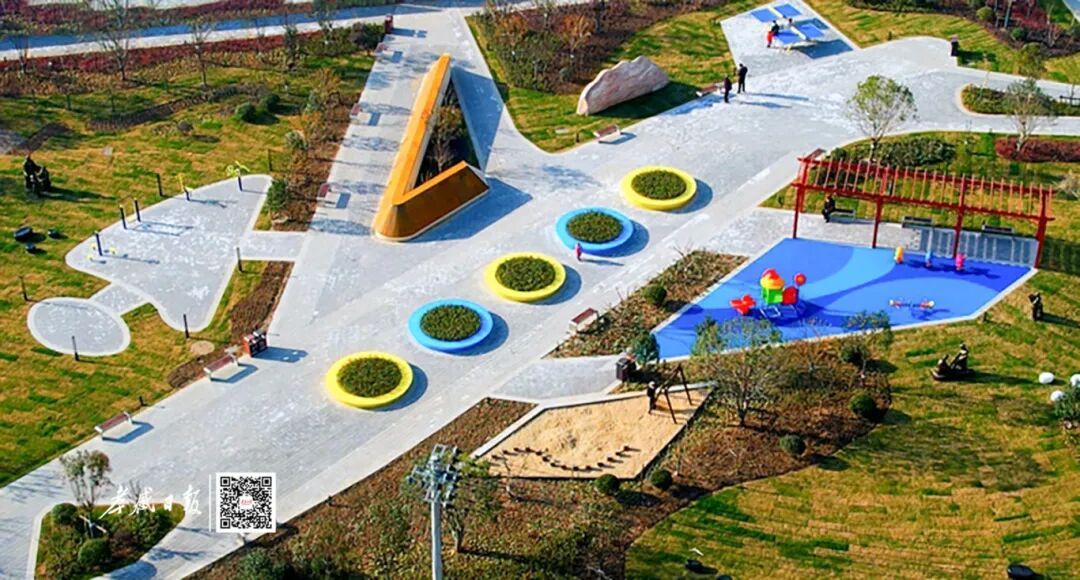 这片曾经的闲置边角地,如今已焕然一新——公园内休闲广场上孩子们追逐嬉戏,景观湖畔杨柳依依,停车场里车辆停放有序。