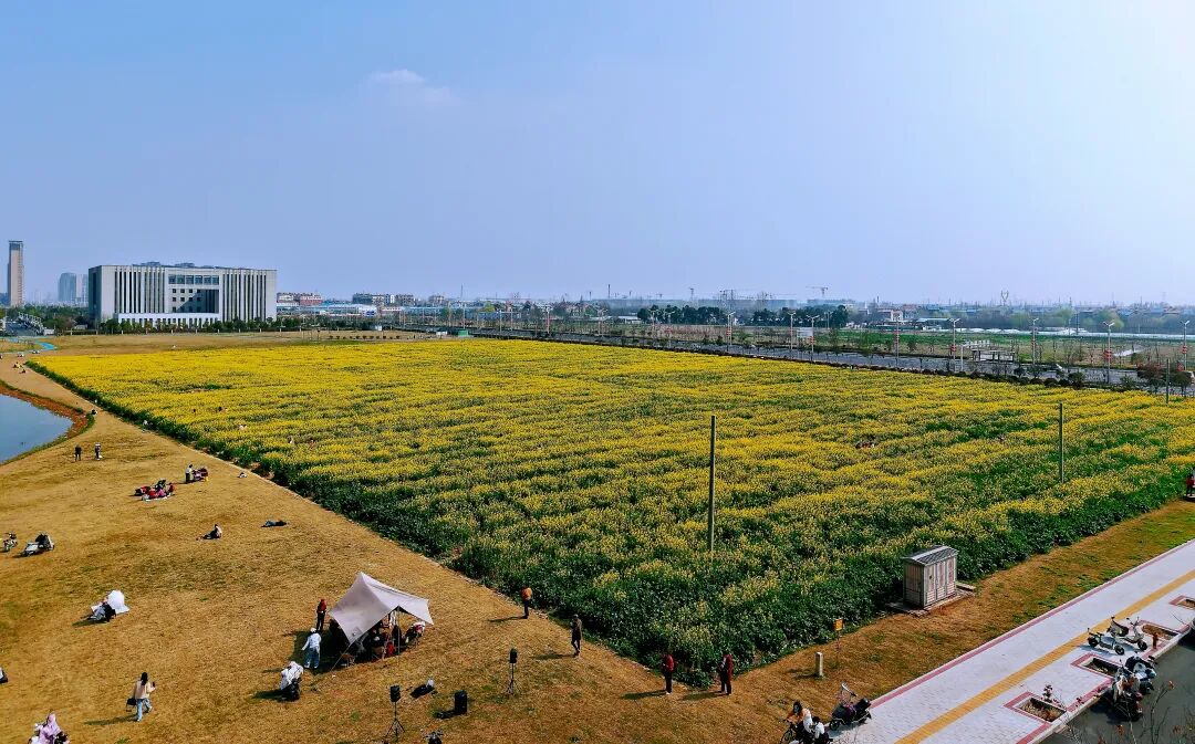 区政务服务中心西侧的口袋公园里,油菜花应下春天的邀约,热热闹闹地开了一片,金色的花浪随风起伏,吸引了不少办事群众和周边居民驻足拍照。