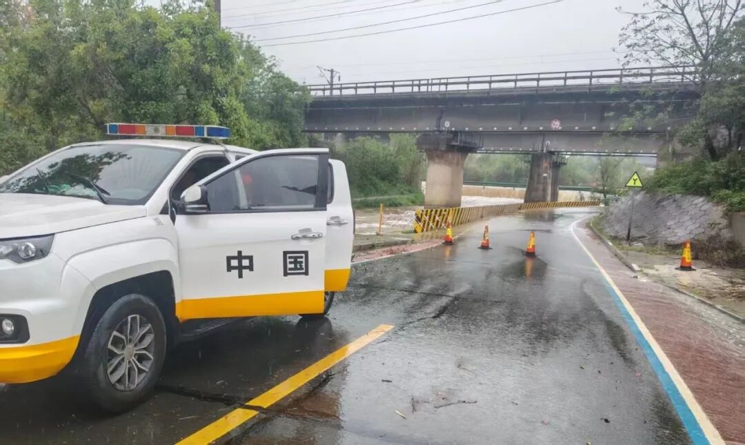 巡查中发现新铺镇百草湖线铁路桥路段因洪水漫路存在重大安全隐患,现场第一时间设置警示标识与警示柱,实施临时封路管控,安排专人24小时现场值守,引导过往车辆绕行避让,坚决杜绝安全隐患。