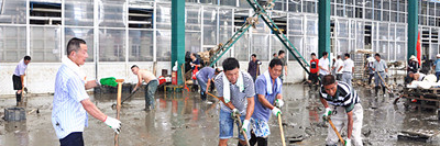 14日18时,在东山头工业园区内,10余名清淤工人经过8个小时的抢修施工,终于将园区内最后一条破损管线修复。