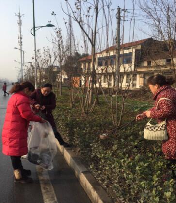 “村里的事大,个人的事小。再说是清理垃圾,为群众着想。”在该镇方堰村周魏湾,刚刚穿上防水雨裤的村民魏子阶正准备下塘挖藕,看见镇村干部们在一起清扫进湾路边的垃圾,58岁的他连忙从水中起身回家拿来扫把加入到清理队伍中来。魏子阶弯着身子,拿着扫把用力地清扫着路边的鞭炮纸屑等垃圾。此刻,灰尘飞扬、也十分呛鼻,过往行人纷纷避让,而魏子阶却依旧有条不紊地清理着垃圾死角。而在另外一处荒芜地,塑料袋、方便碗等白色垃圾满地都是。70岁的村民魏丙军从家中找来一个红色的大方便袋,全然不顾脏,便直接用手从地上捡起垃圾装到方便袋中。“把环境搞好了,我们住着也舒服啊!”